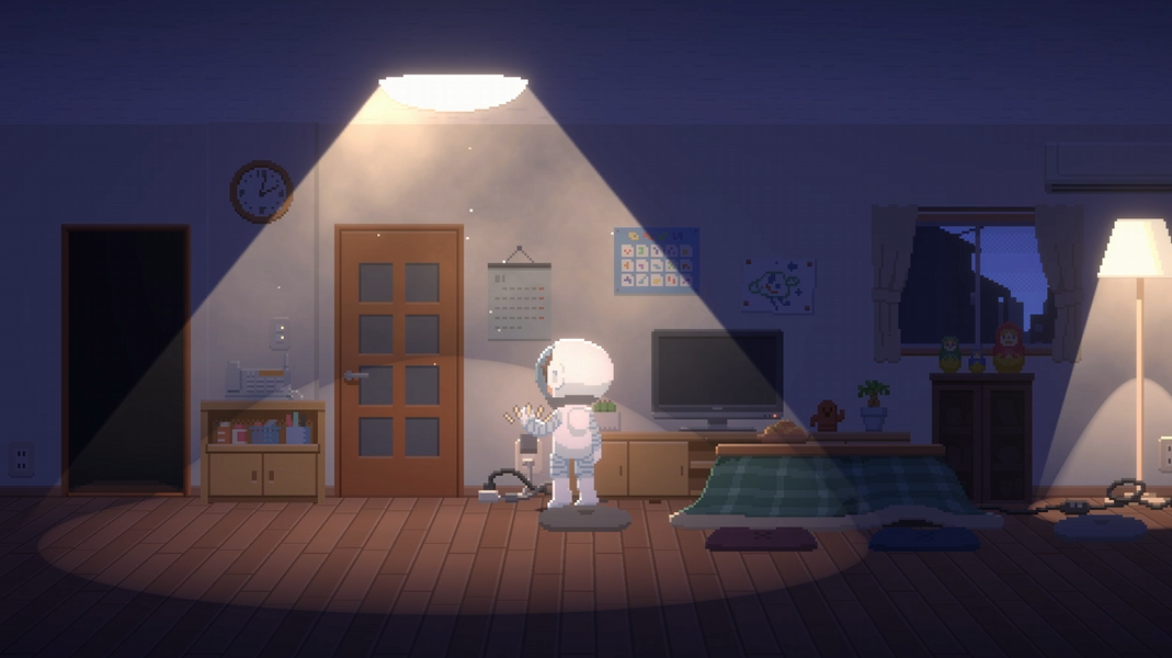 ゲーム内に登場するテレビには、ロケットの発射成功と宇宙飛行士のインタビューが映っていました。