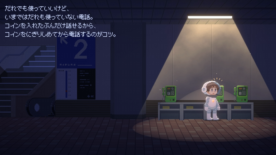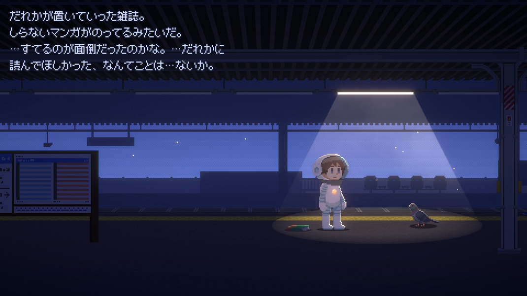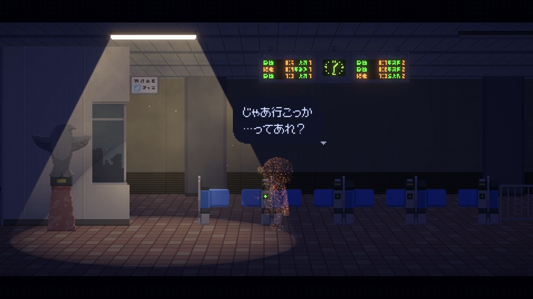 主人公の目的は明かされず、町や駅など複数のロケーションを探索します。