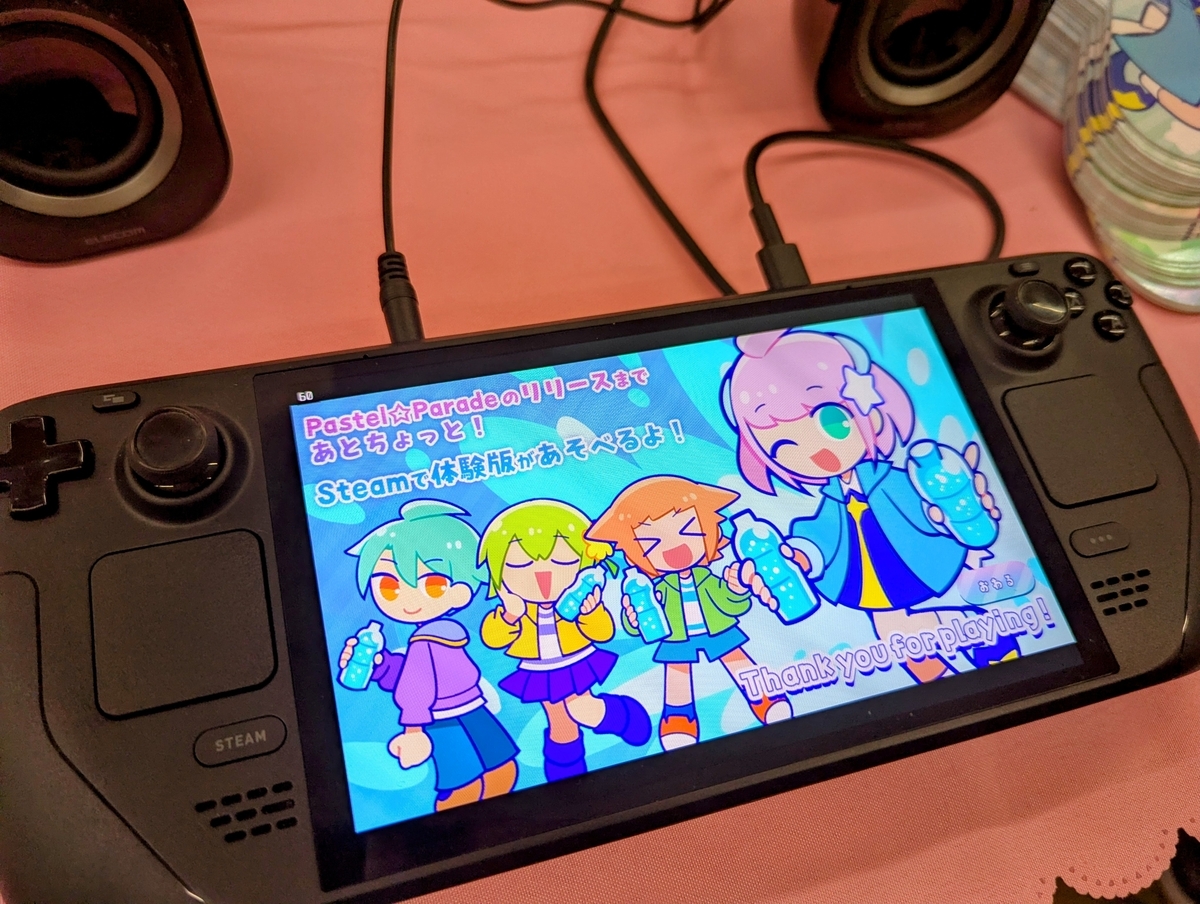 「Pastel☆Parade」を体験しました。かわいい見た目のリズムゲームです。